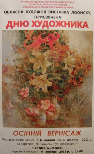 Ко Дню художника (6 октября) в выставочном зале Луганска (на Шевченка 4) состоится открытие осенней выставки Луганских художников. В выставке будут представлены новые работы молодых, а также старых маэстро живописной руки.