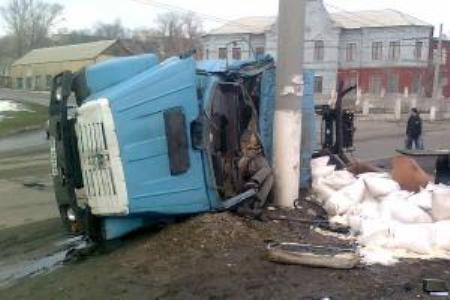 Сегодня, 16 марта, в Лисичанске в районе Кировой Горы перевернулся грузовой автомобиль ЗИЛ.