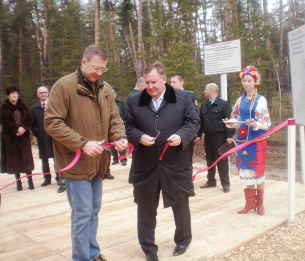 Виктор Сивец вместе с председателем Луганской облгосадминистрации Владимиром Пристюком в торжественной обстановке открыли новую лесную дорогу в ГП «Кременское лесоохотничье хозяйство».