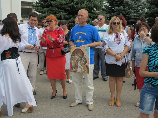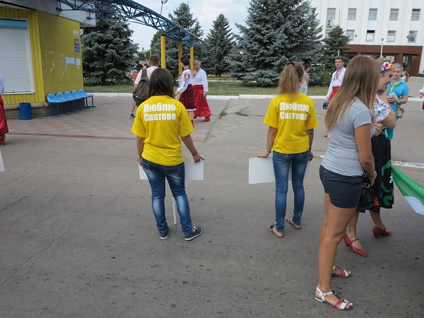 Уперше на «Слобожанському Спасі мені довелось побувати у 2006-му. Тоді він числився міжнародним: до Сватова приїхали колективи з Воронезької та Білгородської областей; були роки, коли брали участь «сябри» з білоруського міста Пружани (Берестейщина). Цього разу гостей навіть з такого «закордоння» не спостерігалось, що, утім, на святковій атмосфері ніяк не позначилось. А гостями, яким довелось проїхати найдовший шлях, були гості з Кам’янець-Подільського. За дивним збігом, торік мені довелось не просто побувати в Кам’янці, а навіть познайомитись із головою тамтешньої районної ради Миколою Жоганом (його ім’я саме прозвучало з головної сцени). Тож не міг не підійти до делегації з Поділля.