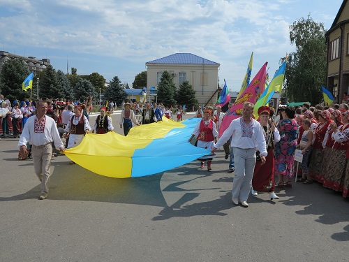 Тут залунав Гімн України, і вся подільська делегація почала підспівувати на повні груди. По завершенні чолов’яга у вишиванці на всю ярмаркову площу вигукнув: «Слава Україні!» і, дочекавшись «канонічної» відповіді, додав: «Україна понад усе!»