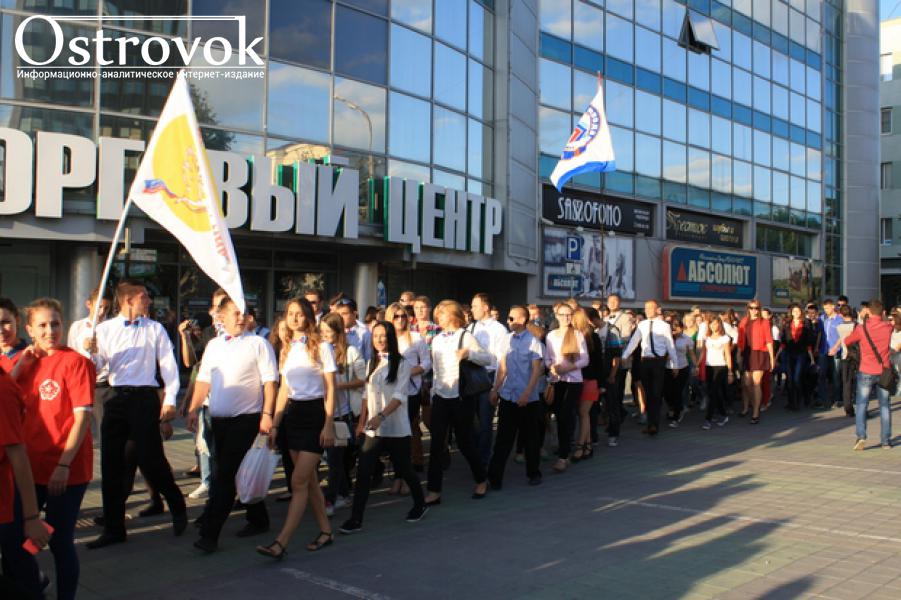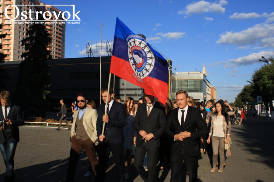 Участники акции, скандируя "С Днем рождения, любимый город", "Мы - луганчане и мы гордимся этим!", "Луганск - лучший город!", "Луганск – русский город!", "Мы не янки, мы – славяне, наши братья - россияне!", прошли по центральным улицам города, неся флаги своих организаций и российский триколор.