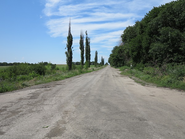 В стары годы по этой трассе областное (а то и выше) начальство любило прошелестеть на ЛиНОС, и потому облавтодор содержал ее в надлежащем порядке. Сегодня же Бахмутка укрылась грязью; некошеная трава вылезает на асфальтовое полотно. Я даже не понял, что мы какое-то время едем по всемирно знаменитой сегодня дороге, и только когда вдали показалась водонапорная башня, понял, где мы едем.