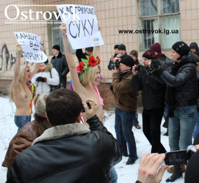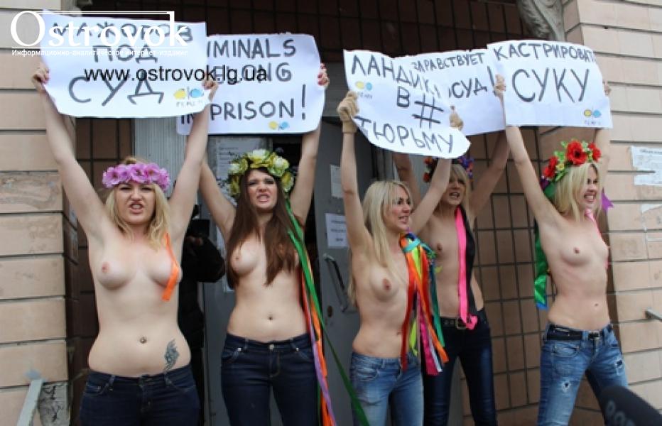 Акцию по случаю вынесения приговора депутату Луганского горсовета Роману Ландику провели возле здания Ленинского районного суда FEMEN. Об этом сообщает корреспондент «Остров Лугань».