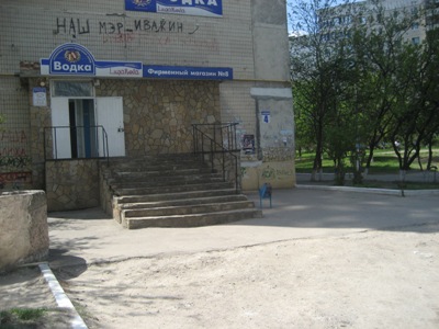 Фирменный магазин "Водка" (кв. Заречный, 4) , как структура малоимущая, безусловно не в состоянии расщедриться на восстановление этого небольшого кусочка тротуара, который сама же разбивает уже более 10 лет .