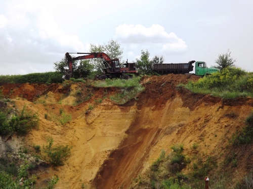 «Ранее здесь находился вентиляционный ствол, где располагались промышленные помещения. Когда мы начали выполнять работы по формированию рельефа, наткнулись на бетонные конструкции. Но основная опасность – расположение откосов возле устья выработки. Откосы на сегодня составляют 70 градусов. Для безопасного ведения поисково-разведовательных работ откос не должен превышать 28 градусов. Сегодня высока вероятность сползания нависших кусков песчано-глинистой почвы. Это наибольшая опасность, с которой сопряжены эти работы. Мы подвергаем людей, ведущих работы, большому риску», - рассказал начальник шахты им. 50-летия СССР Вадим Чекмезов.