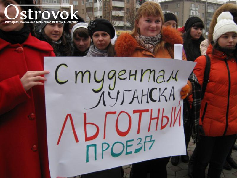 Студенческая молодежь г. Луганска обратилась к Луганскому городскому голове Сергею Кравченко и депутатам горсовета с требованием предусмотреть средства на льготный проезд в местном бюджете на 2013 г. для обеспечения прав студентов согласно действующему законодательству.