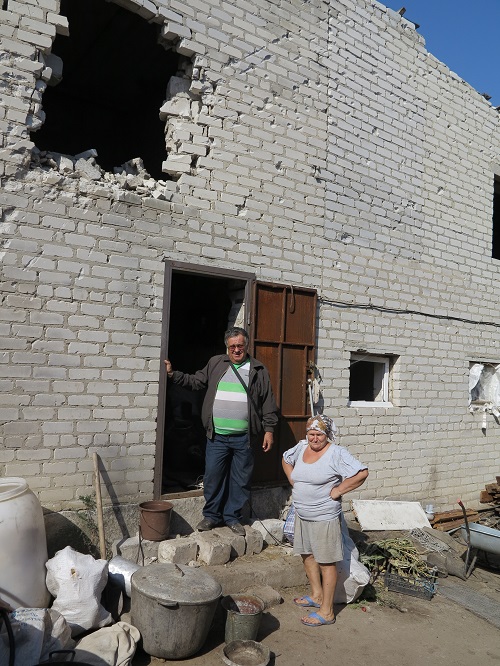 В тот день в Крымское прибыли сразу две международные организации. И не с пустыми руками (точнее, кузовами). Красный Крест подвез к сельскому ДК шифер и какие-то зеленые доски. Селяне организованно перегрузили подарки на тракторный лафет и на другие частные транспортные средства. Как происходила выгрузка кирпича от норвежцев, зафиксировать не довелось – их грузовик проследовал куда-то мимо, на тот край села, который ближе всех расположен к линии фронта и, соответственно, больше всех пострадал.