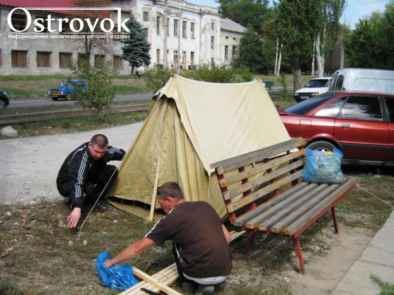 В знак протеста, представители общественных организаций разбили возле здания обкома КПУ палатки и намерены остаться в них ночевать.