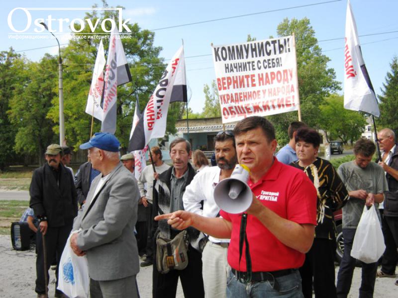 «Простые жители Луганска и области возмущены беспардонным поведением представителей КПУ: коммунисты обманывают жителей не только Луганщины, но и Украины в целом, обещая вернуть народу всё – предприятия, жильё, работу… В эти сказки люди уже не верят. На самом деле, коммунисты на сегодняшний день реально владеют рычагами власти в Луганске. Секретарь Луганского горсовета – коммунист, он подписывает решения на десятки миллионов гривен. А в этом время десятки тысяч луганчан не имеют нормального жилья, а 3 тыс. – бездомные. Коммунисты захватили бывшее общежитие (сейчас это здание Луганского обкома КПУ), в нем могли бы жить 500 луганчан. Пусть Спиридон Килинкаров (нардеп от КПУ, первый секретарь Луганского обкома КПУ) пустит людей к себе в обком на зиму!», - заявил Г. Пригеба.