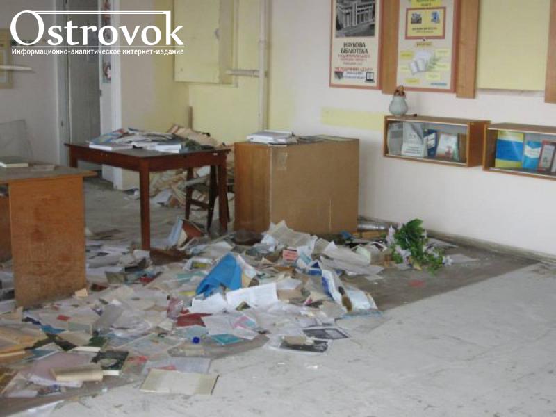 Научная библиотека Луганского Восточноукраинского национального университета им. В. Даля после выхода из нее полевого госпиталя ЛНР оказалась полностью разгромленной и разграбленной.