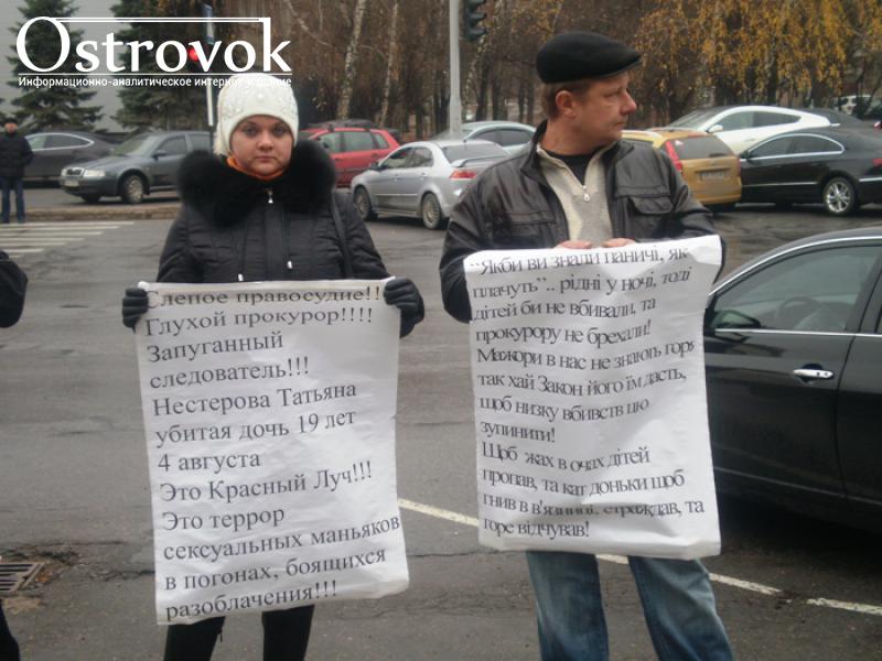 Акция протеста с требованием «наказать убийцу 19-летней Татьяны Нестеровой» прошла возле здания Луганской областной прокуратуры сегодня, 26 ноября. Об этом сообщает корреспондент ostrovok.