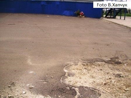 ФОТО 04. Воронка на асфальте от снаряда возле магазина «Парус».