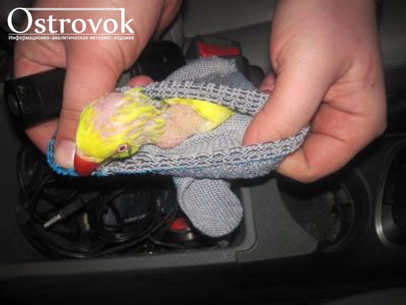 В объяснениях гражданин пояснил, что птиц он купил в г. Горловка Донецкой области. Следует отметить, что гражданин России очень жестоко обращался с птицами. Одного из них он замотал скотчем и спрятал в подлокотнике автомобиля, другого спрятал в перчатку и накрыл курткой.