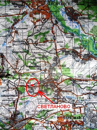 Расскрыв карту Луганской области масштаба 1:200 000, мы убедились, что ж/д станция «Светланово» находится в стороне от ж/д сообщения Лисичанск-Попасная-Светлодарское (направления к Углегорской ТЭС). Кроме того, на станции «Светланово» находится с десяток параллельных ж/д путей. Также, если вы посмотрите на карту, то увидите, что ж/д ветка, подходящая к шахте «Тошковская» ПАО «Горскуголь», никак не может быть блокированакакими-либо событиями на ст. «Светланово».