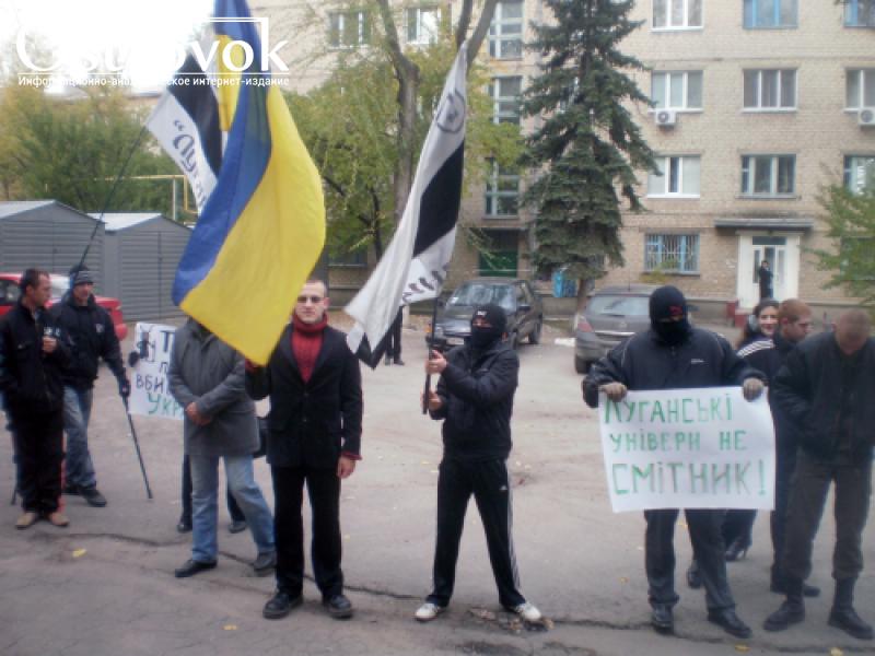 Акцию протеста против «беспредела иностранных студентов» провела луганская общественная организация «Луганцы» 26 октября в Луганске.