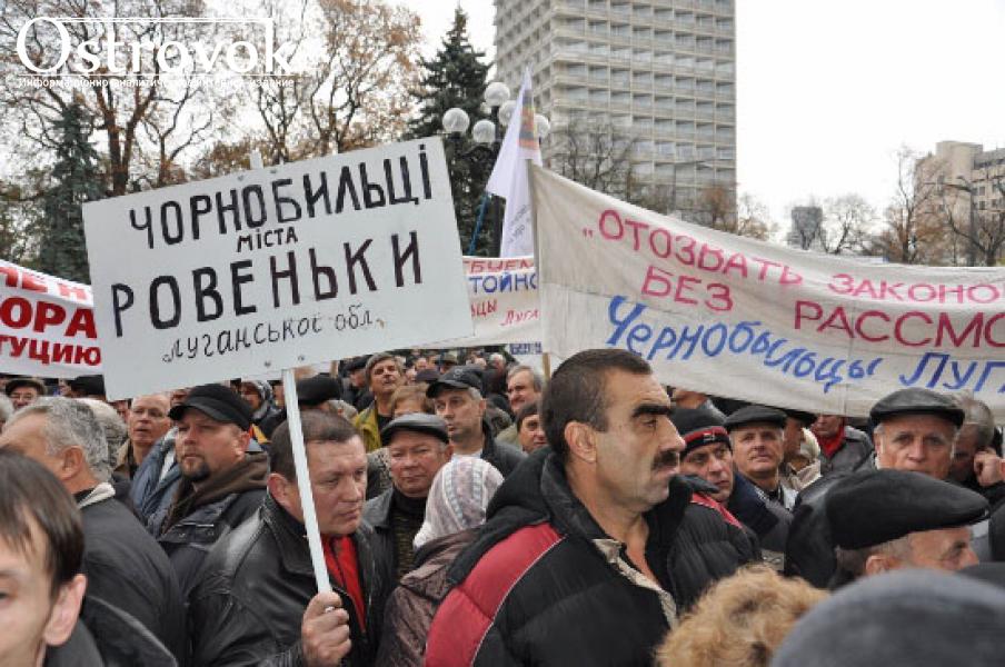 Напомним, сегодня, 1 ноября 2011 г., под стенами Верховной Рады Украины проходит пикет чернобыльцев. Они держат плакаты с надписями: «Не трогайте пенсии участников ликвидации последствий аварии на ЧАЭС!», «Ежегодно хороним около тысячи человек!», «Мы на Дороге смерти в 40 км от ЧАЭС!», «12 тысяч чернобыльцев в земле, на кого оставлены их семьи?», «Руки прочь от чернобыльского закона!».