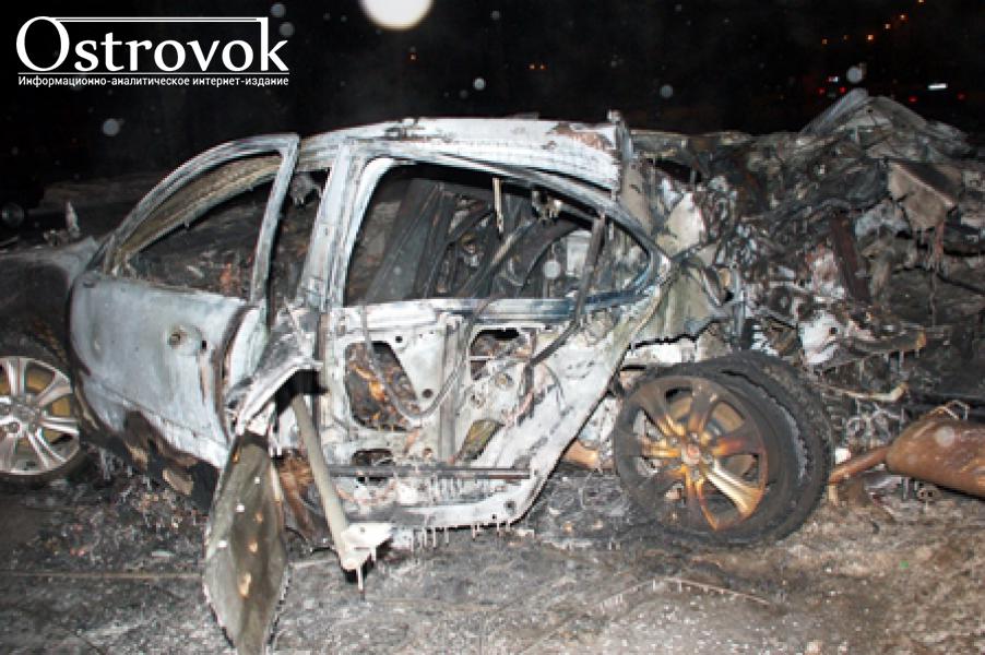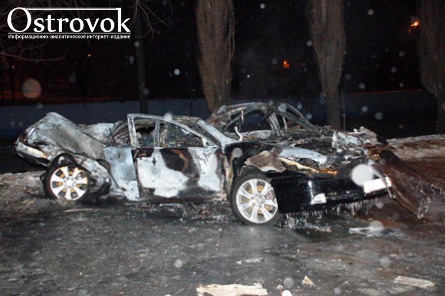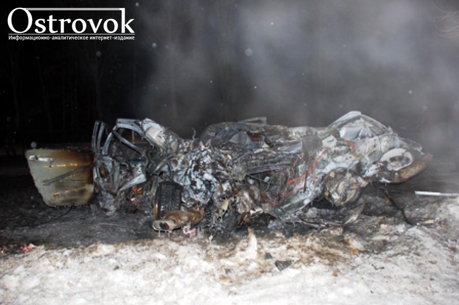 От удара автомобиль загорелся.