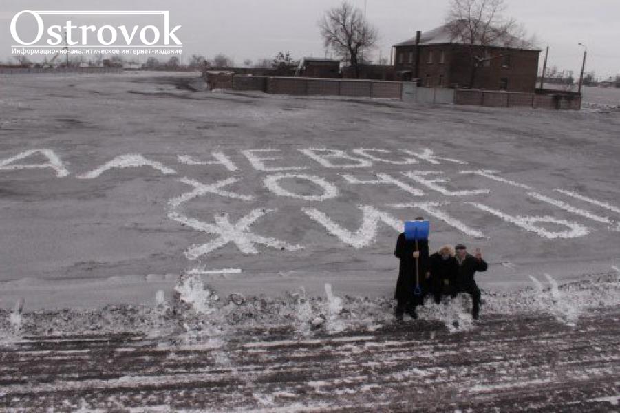 Жители Алчевска Луганской области сделали надпись на снегу неподалеку от местного металлургического комбината "Алчевск хочет жить!".