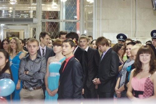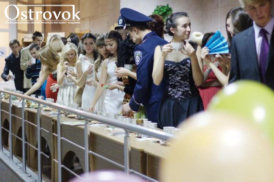 Студенты постарались: дамы явились изящно одетыми, в нарядных вечерних платьях, кавалеры – в темных вечерних костюмах, курсанты ЛГУВД предстали в парадной военной форме.
