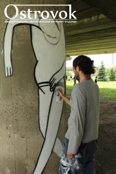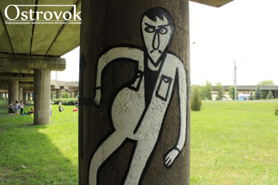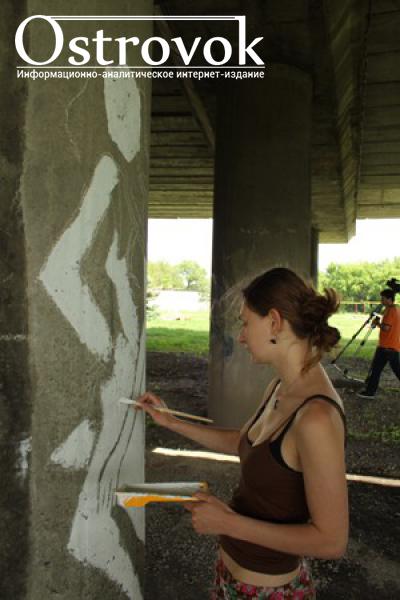 16 - 18 мая уличные артисты Миколай Рейс и Ульяна Быченкова принялись украшать опоры железнодорожной эстакады граффити.