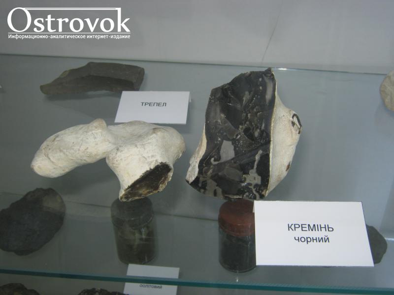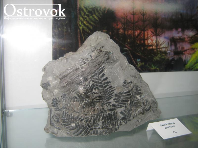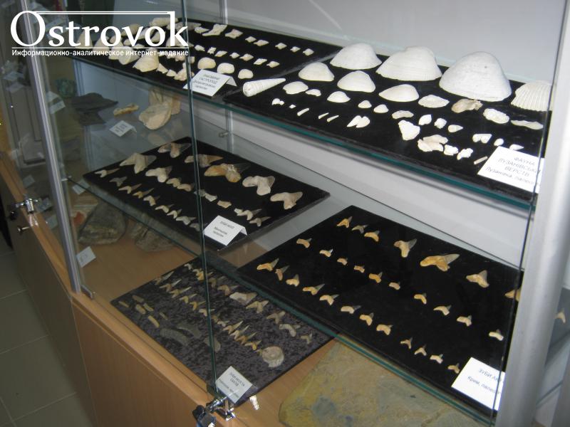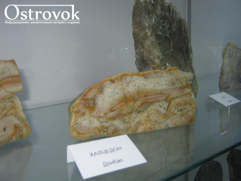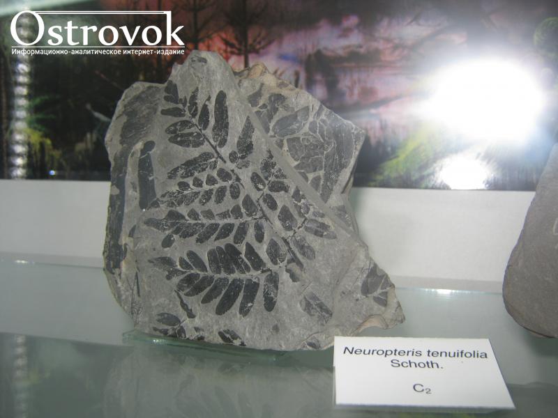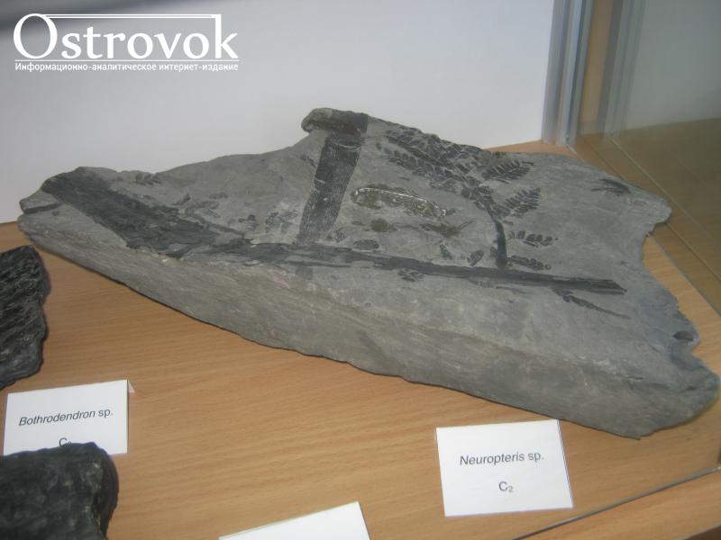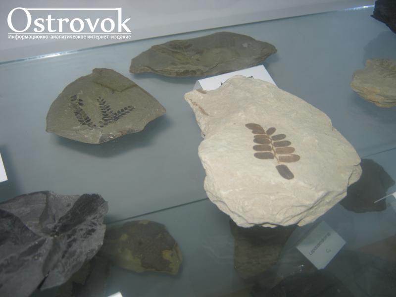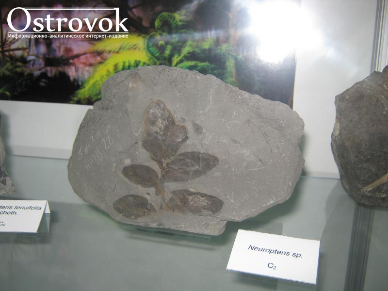 «Здесь демонстрируются образцы основных горных пород, а также ископаемые остатки растений и животных. Среди них наиболее интересны отпечатки плавунов, хвощей, папоротников, остатки моллюсков, зубы акуловых рыб, кости животных времен четвертичных обледенений (оленя, мамонта, шерстистого носорога). Здесь же представлен уникальный отпечаток большой стрекозы. Отдельные витрины посвящены полезным ископаемым Донбасса и новым поступлениям в музей», - пояснил профессор Н. Удовиченко.