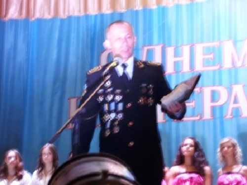 В благодарность за оказываемую помощь со стороны Луганской областной военно-гражданской администрации он вручил ее представителю памятный сувенир в виде куска белого мрамора на фоне черного гранита, символизирующих «труд и уголь».