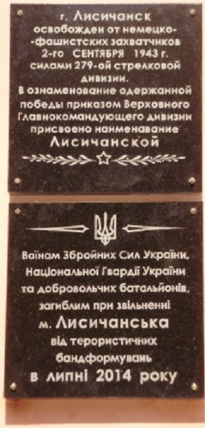 Право открытия было дано бойцам, которые освобождали Лисичанск: подполковнику Виталию Безкровному и лисичанину Александру Ефимову. В своей торжественной речи Александр Ефимов подчеркнул: «Видите, как символично расположены эти две памятные доски рядом, видите от кого освобождался Лисичанск?».