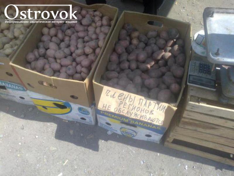 «На стихийном рынке в Лисичанске Луганской области продажа для членов Партии регионов не осуществляется. Об этом написано на табличке рядом с овощами: «Члены Партии регионов не обслуживаются», - сообщает Цензор.НЕТ.