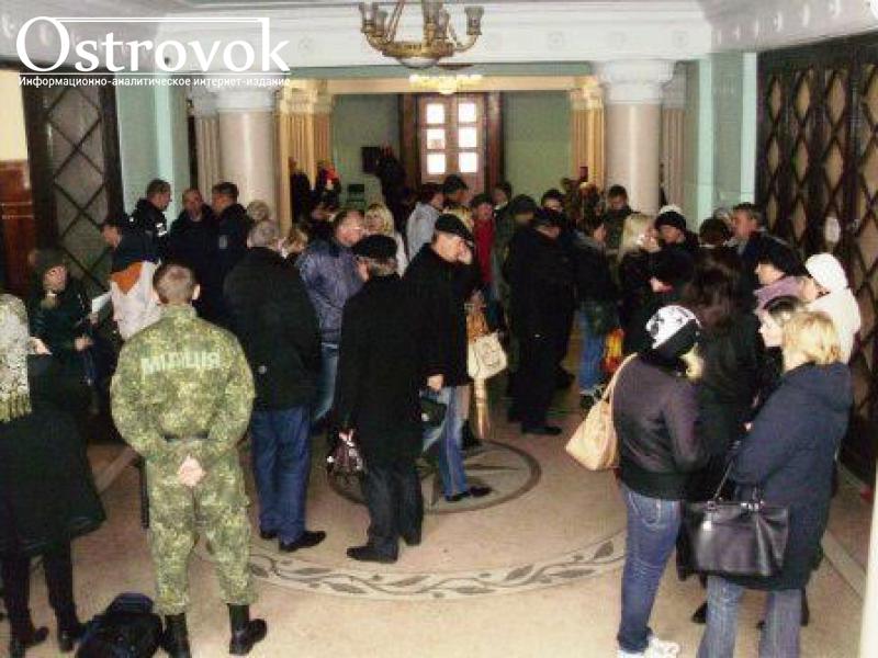 В фойе помещения ЛГИК было людно - все ждали своей очереди. По наблюдению журналиста сам процесс получения бюллетеней был отлажен, но требовал времени на соблюдение документально-юридических формальностей.