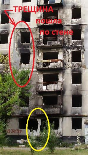 Житель этого дома Федор Токарев тогда в интервью говорил: «Крен плит потолка первого этажа видно не вооруженным глазом (составляет 10-20%- ред.). С противоположной стороны этого подъезда все разрушено, т.е. вся тяжесть держится на этом блоке. В случае разрушения этого блока потеряется равновесие, и вся масса может рухнуть во двор дома».