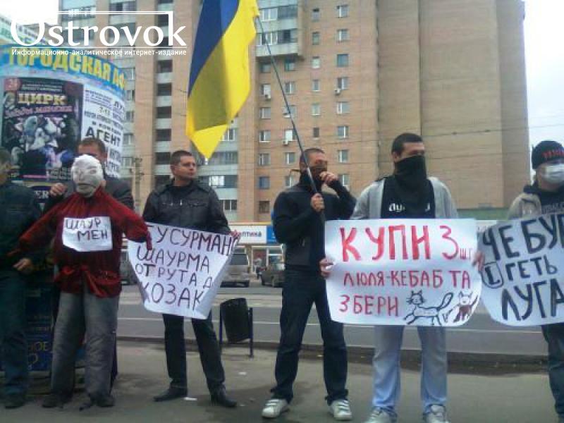 14 октября общественная организация "Луганцы" провела акцию протеста с требованием запретить продажу шаурмы в областном центре. Фото - "Неделя+".