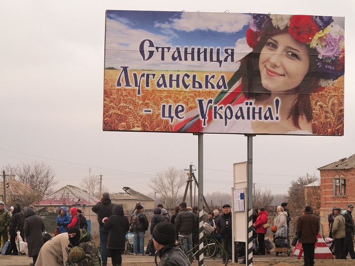 Что особенно порадовало – власть не забыла о политической пропаганде. Вновь прибывших встречает больших размеров рекламный щит «Станиця Луганська – це Україна».