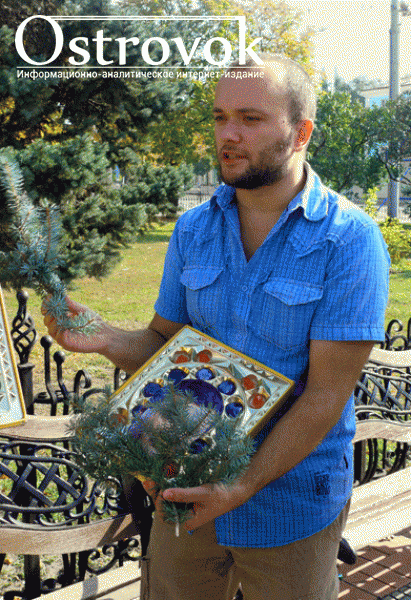 Как сообщает издание, представление началось у памятника Тарасу Шевченко. Автор инсталляции, которая впервые была представлена в прошлые выходные на выставке современного искусства в Луганске, показал всем желающим мастер-класс по изготовлению «иконы» из коробки конфет.