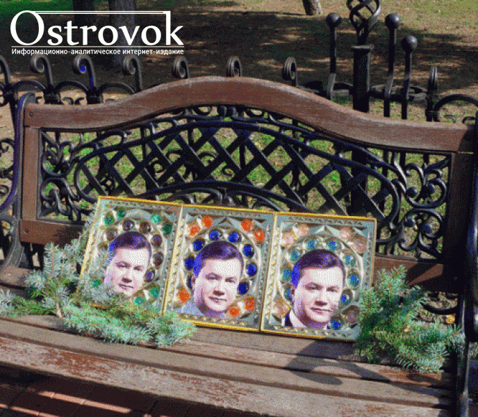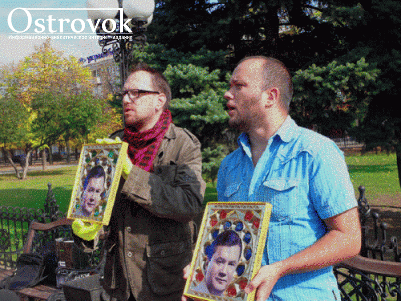 В воскресенье трое луганчан – Славентий Бондаренко, Константин Скоркин и Алексей Бида – прошлись по центру Луганска с тремя «иконами» Виктора Януковича.