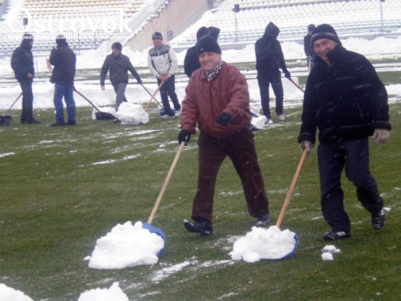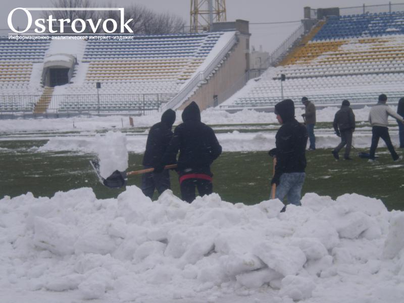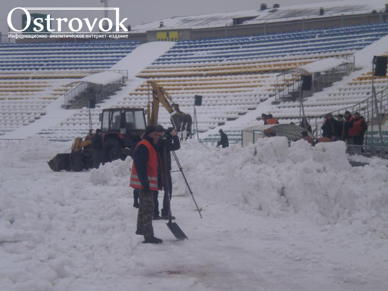 По информации В. Ярыша, вчера, 23 февраля, центральную трибуну стадиона помогли очистить от снега 150 студентов Луганского национального университета им. Т. Шевченко. Сейчас луганские студенты и волонтёры очищают от снега поле.