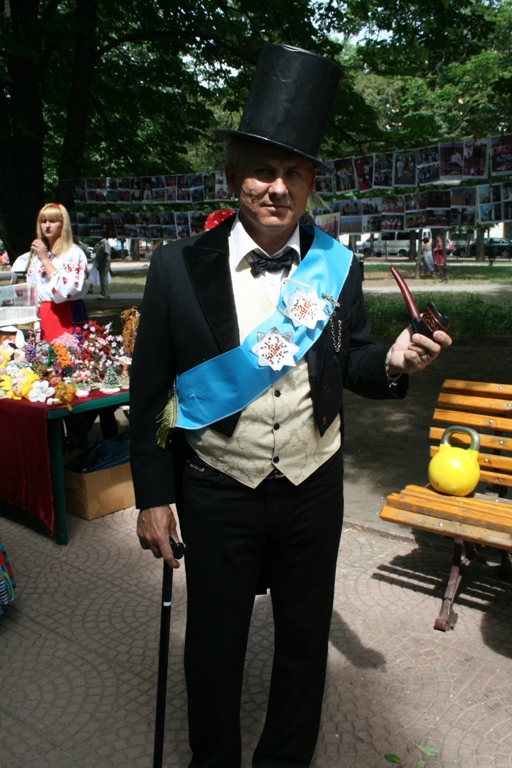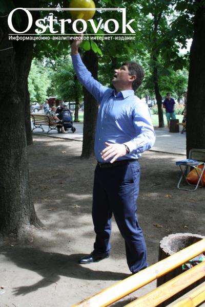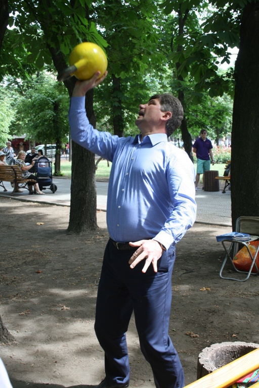 Также мэр города и губернатор Луганской области приняли участие в различных конкурсах, которые прошли в рамках медиа-вернисажа, и жонглировали гирей.