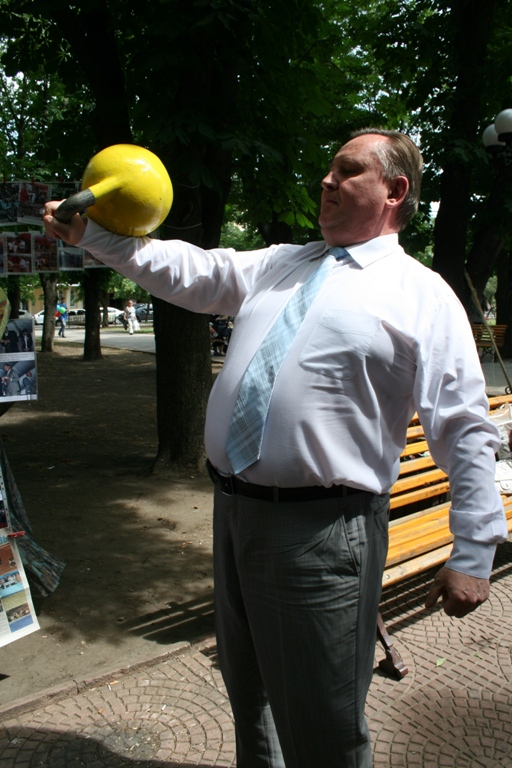 Мэр Луганска и губернатор области соревновались в жонглировании гирей на "Медиа-вернисаже"