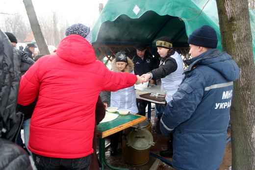 Пока луганчане купались, спасатели следили за безопасностью. После массовых купаний в ледяной воде люди могли переодеться и согреться в палатках Государственной службы по вопросам чрезвычайных ситуаций Украины, а в некоторых местах отведать горячего кулеша и выпить чаю.
