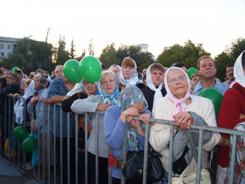 Правда, всем желающим образки, вероятно, не достались, поскольку ажиотаж усилился еще больше. Люди тянули руки, пытаясь - и нет.