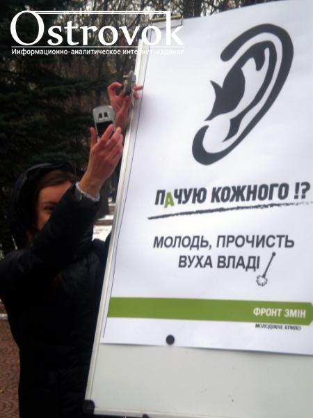 Акцию «Ухо власти» провели возле облгосадминистрации представители молодёжного состава Луганской областной организации политической партии «Фронт Змiн». Об этом сообщает корреспондент «ОстроВ Лугань».