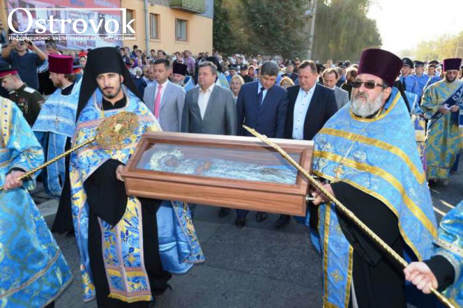 Во время встречи Плащаницы Пресвятой Богородицы состоялся Крестный ход от храма Святой Великомученицы Татианы УПЦ (ул. Херсонская, г. Луганск, рядом с ТРЦ «Украина») в Свято-Владимирского кафедрального собора (пл. Горького, 5, г. Луганск). В честь прибытия святыни на Луганщину в кафедральном соборе состоялось посвященное этому событию торжественное богослужение.