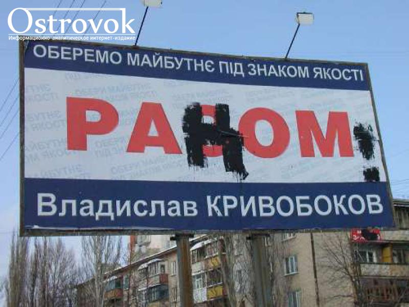 Билборд с призывом экс-депутата Луганского облсовета Владислава Кривобокова к «майбутньому під знаком якості» был подвергнут акту вандализма. Об этом сообщает газета «ХХІ век».