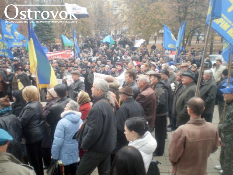 Представители более 20-ти луганских общественных организаций и политических объединений под стенами здания Луганской облгосадминистрации проводят акцию протеста и заявляют о «несоблюдении органами власти конституционных прав граждан, пренебрежении всеми ветвями власти Конституции Украины».