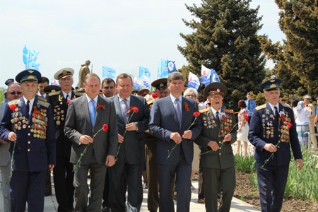 Акция стартовала в сквере им. 9 мая. Народный депутат Украины Александр Ефремов, председатель Луганской облгосадминистрации Владимир Пристюк, Луганский городской голова Сергей Кравченко и ветераны войны возложили цветы к Братской могиле воинов, погибших за освобождение Луганска.