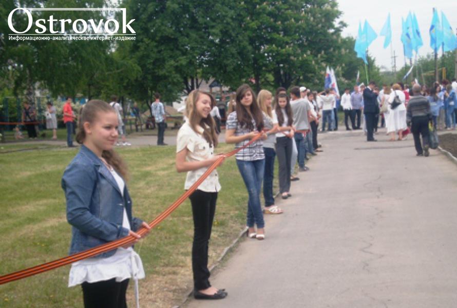 В Луганске дали старт торжествам ко Дню Победы. 6 тысяч школьников и студентов растянули 15-километровую Георгиевскую ленту