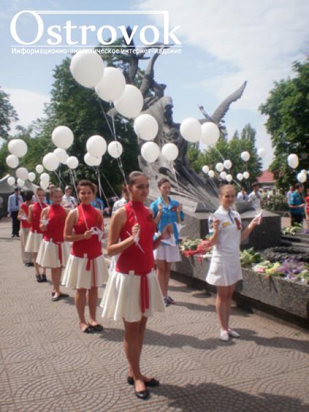 Возле Пилона Славы состоялась акция, в ходе которой школьники запустили в небо 67 бумажных журавликов с именами освободителей Луганска.