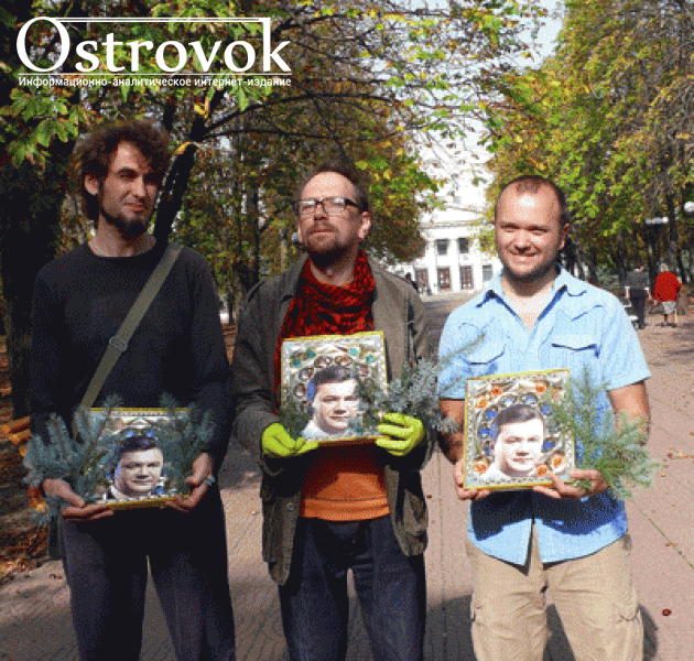 Оригинальностью своих идей отличился и организатор выставки Вячеслав Бондаренко. Его серия фотографий «Вижу. Слышу. Говорю», а также «Икона Виктора Януковича» на конфетной коробке не оставила зрителей равнодушными.