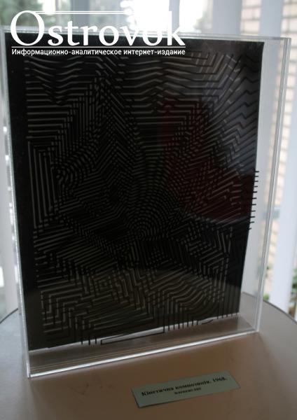 На выставке представлено 120 картин и 20 объектов популярной в Европе со второй половины XX в. и до современного этапа течения технического прогресса визуального искусства (оптического искусства).