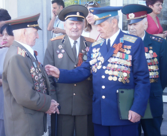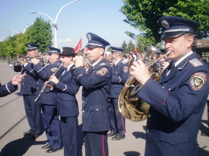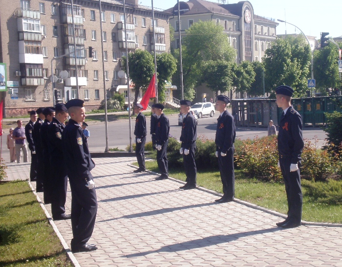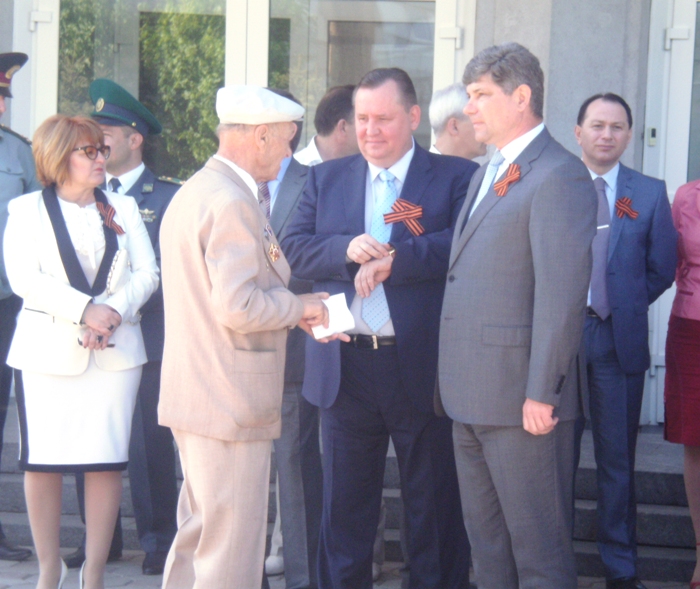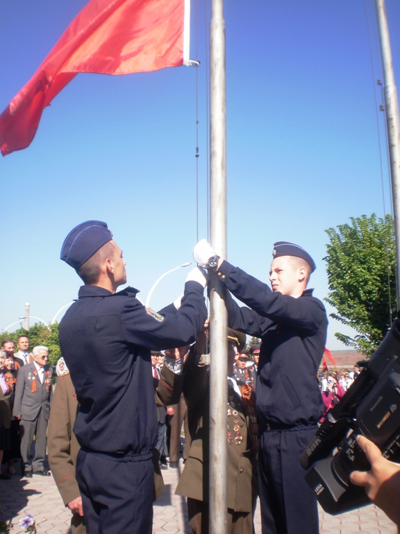 Под звуки марша «Победа» в исполнении оркестра Луганского государственного университета внутренних дел Украины имени Эдуарда Дидоренко Флаг Победы подняли ветераны ВОВ Василий Деркач, Михаил Гудзенко и воспитанниками Луганского областного кадетского корпуса имени Героев «Молодой Гвардии».